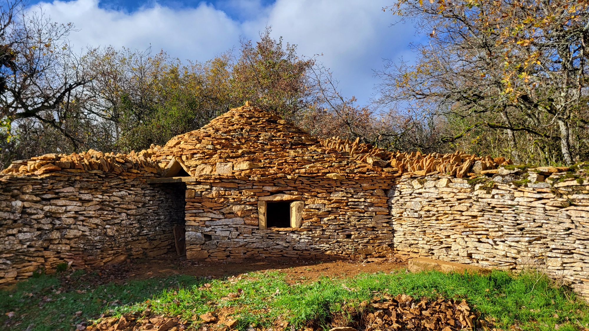 Reprise de la marche et pour se réchauffer, l'un d'entre nous nous fait prendre un sentier abrupt qui passe par la tour du mont Bansillon et ses cadoles « cabane en pierres sèches » en cours de réparations par des passionnés qui veulent sauver le patrimoine bâti local.
