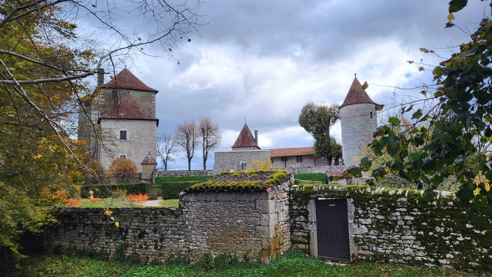 Poursuite pour le point de vue de Andelot-les-Saint-Amour (91 habitants) puis visite de son château, ancienne demeure seigneuriale du XIIème siècles, domaine privé très bien entretenu.