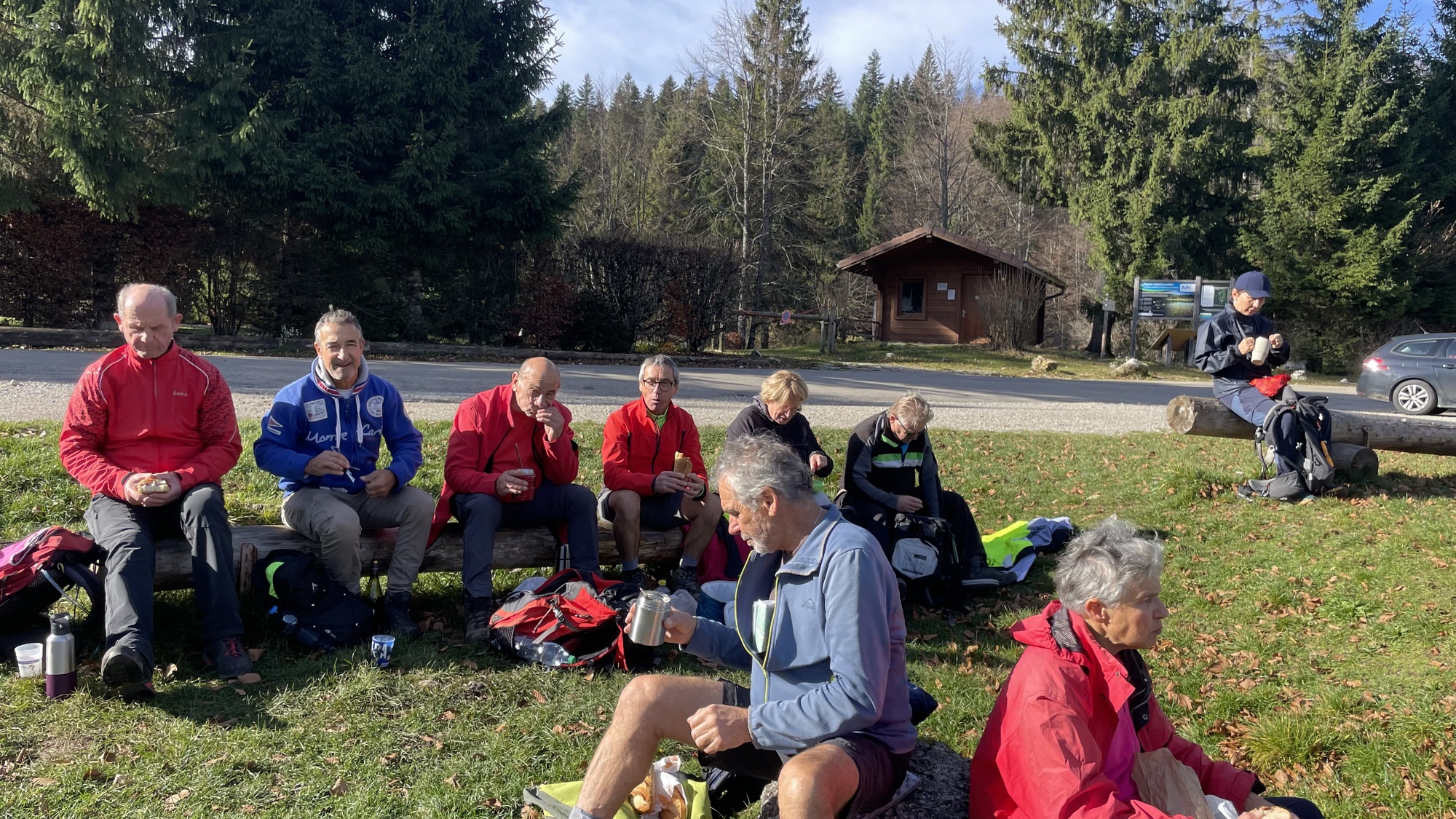 Ce jeudi 13 novembre, 11 randonneurs sont présents au covoiturage à Grofilex, direction Plagne petit village perché au-dessus de Saint-Germain-de-Joux, pour une sortie de 19 km et 561 m de dénivelé (on verra à l'arrivée).